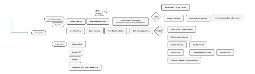 Multi-role diagnostics; selection-first UX patterns; booking-engine interaction design; WCAG-aligned palette and contrast remediation; iterative validation with 12 participants across Owners, Guests, and Managers.